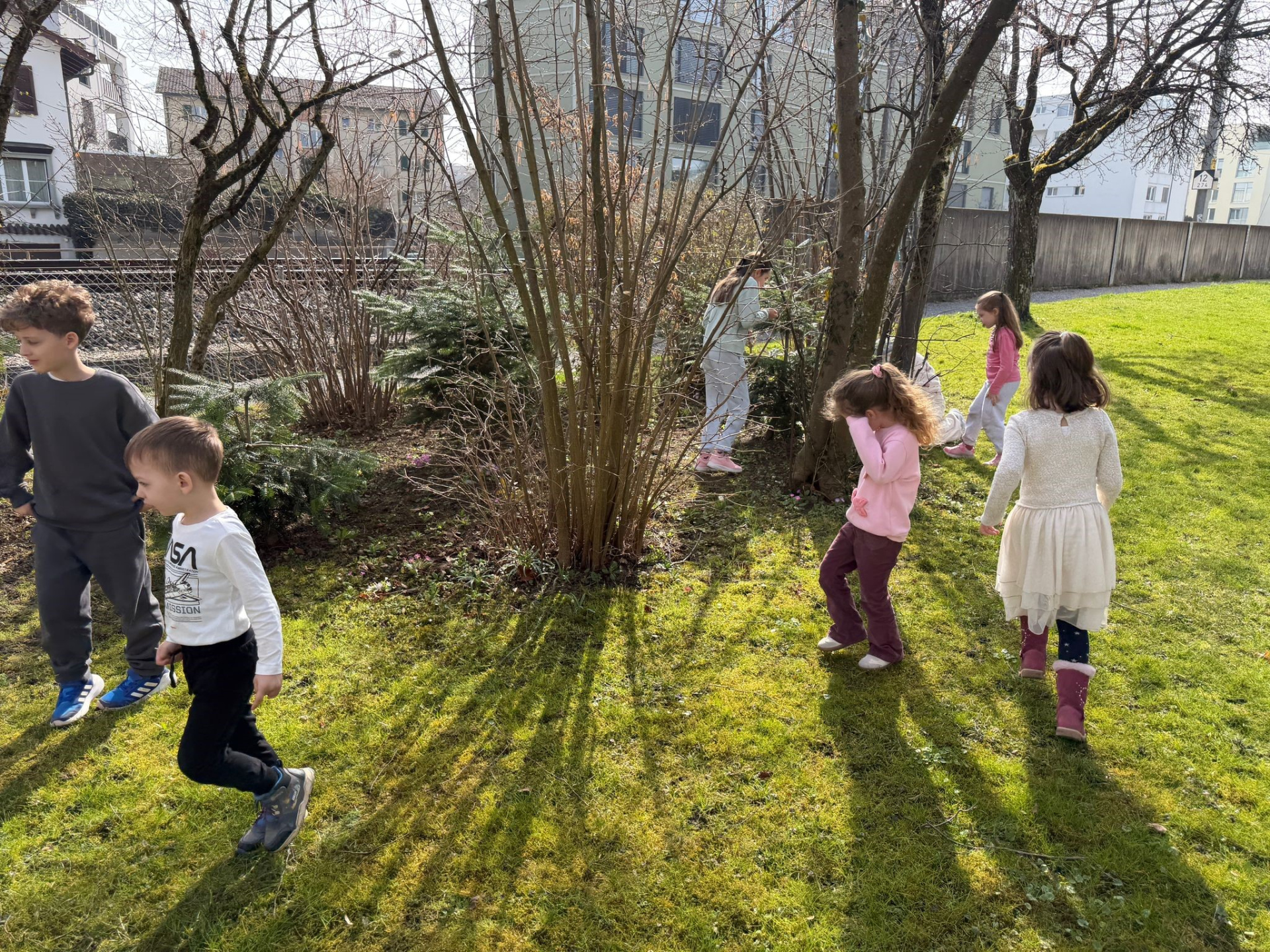 Natürlich durfte auch Bewegung nicht fehlen: Bei einer fröhlichen Ostereiersuche im Freien machten sich die Kinder auf die Suche nach versteckten Eiern. Mit viel Spass, Lachen und Spannung wurde jeder Winkel draussen erkundet.